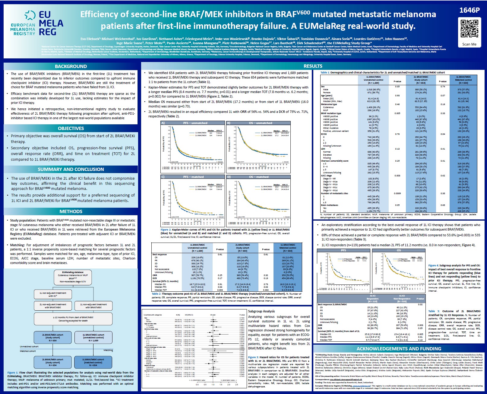 ESMO 2025: Efficiency of second-line BRAF/MEK inhibitors in BRAFV600 mutated metastatic melanoma patients after first-line immunotherapy failure. A EUMelaReg real-world study.