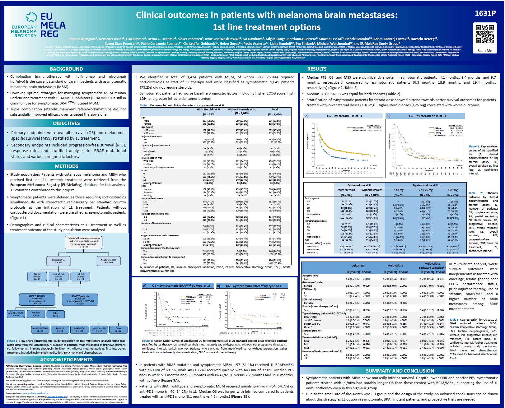 ESMO 2025: Clinical outcomes in patients with melanoma brain metastases: 1st line treatment options